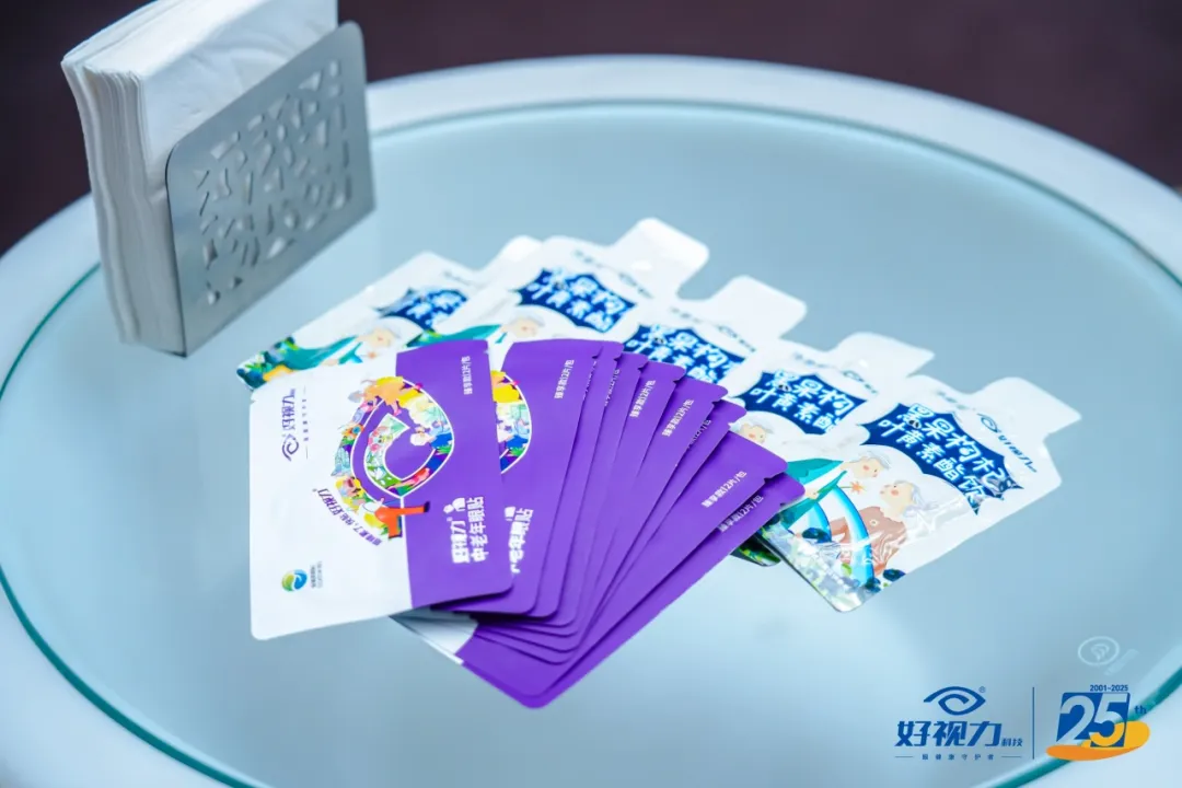 展会现场,好视力设立品牌专属展区,集中陈列多款明星产品。从经典款护眼贴到创新升级2.0系列,产品矩阵完整呈现品牌25年沉淀。